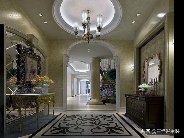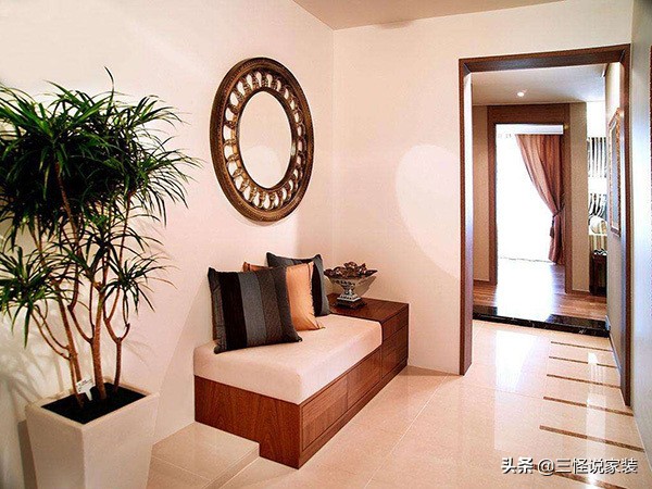 玄关就是入户大门两边的位置,在这里摆放镜子是不会有照到门神的情况的,也不会被阳光直射到,还能让财位的空间发挥更好的作用,效果是非常好的。