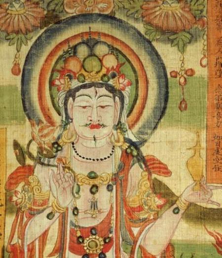 再回到观世音菩萨的身上,他的造像我们看到的都是女性,其实在佛教刚传入的时候,他是个男性的形象,还有小胡子。