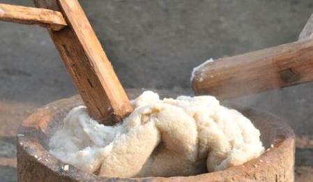 第五步;打年糕,打年糕可是一个体力活,年糕只有经过成百上千次击打之后才会变得有嚼劲,更爽口。吃年糕的时候不妨感谢一下打年糕的师傅们吧。