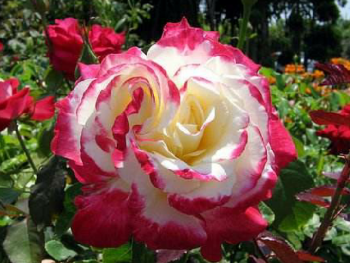 环境:红双喜月季具有良好的抗病性,特别好养,它适应性很强,耐干旱,喜日照充足,空气流通的环境,盛夏需适当遮荫。