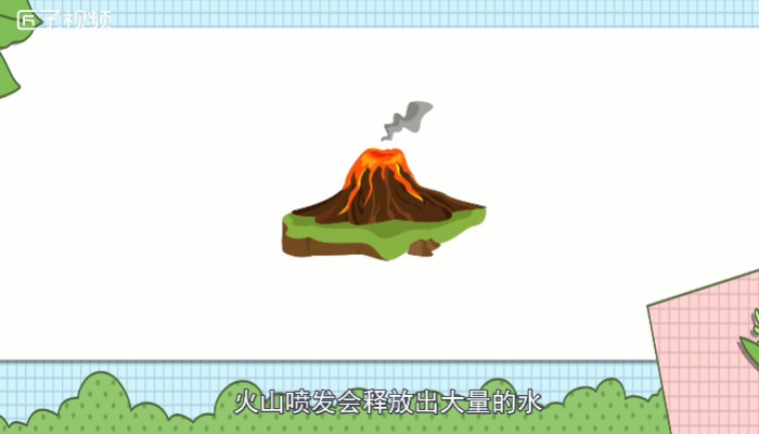 另外,火山喷发会释放出大量的水。在火山喷发后,岩浆流到地表,随着压力的减小,水分被释放出来。