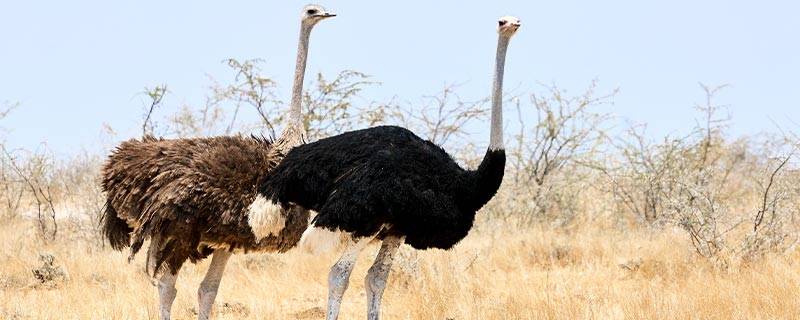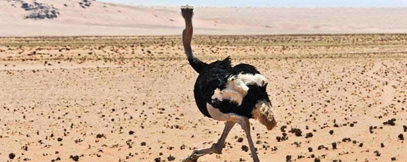 鸵鸟是鸵鸟科下唯一的一种物种,也是走禽类中的一个代表。鸵鸟的高度可以达到2.5米,羽毛以黑白色为主,翅膀跟尾羽是纯白色的,皮肤是桃红色或者蓝灰色的。鸵鸟的脖子很长但却没有羽毛,虽然有翅膀但却不会飞。鸵鸟的腿是比较长的,平均时速可以达到60千米,奔跑的速度是比较快的。