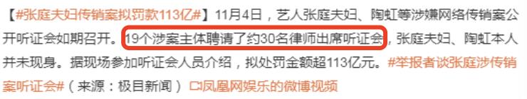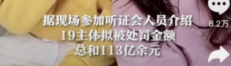 网传,这次听证会的将对19家公司主体及涉案主要人员进行处罚,罚金总和为113亿余元。
