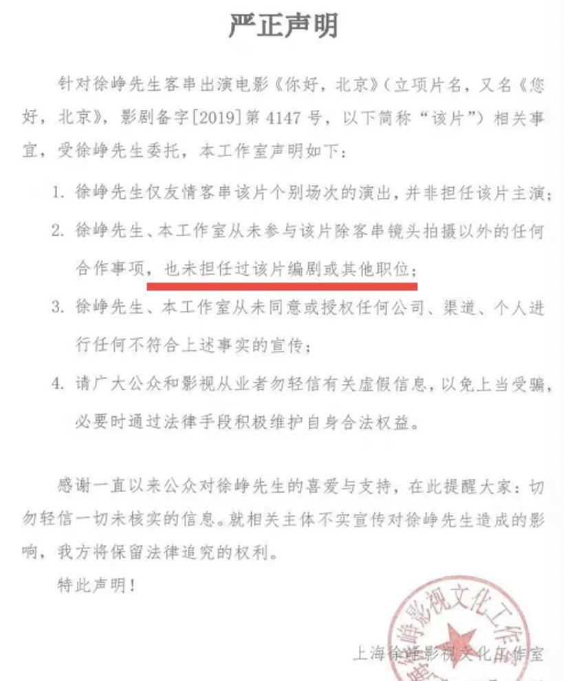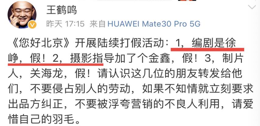 比如前阵子演员王鹤鸣手撕项目组,控告徐峥抢功劳的事。
