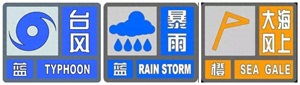 市气象台已于昨日17时发布了台风蓝色预警信号,滨海新区和宁河区气象台发布了台风黄色预警信号。今天上午,市气象台发布了暴雨蓝色预警信号,并将海上大风黄色预警升级为橙色预警信号。