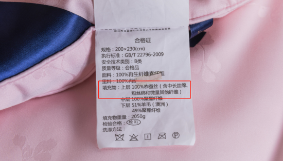 除了贴身、保暖、吸湿性能等要求之外,被子的价格也是一个重要的考量。基于市场对于桑蚕丝的人工成本,以及市场的喜爱推崇等原因,同等重量下,桑蚕丝被的价格约为柞蚕丝被的2倍,但其蓬松吸湿保暖性却优于桑蚕丝被,以此看来,柞蚕丝被性价比更高!