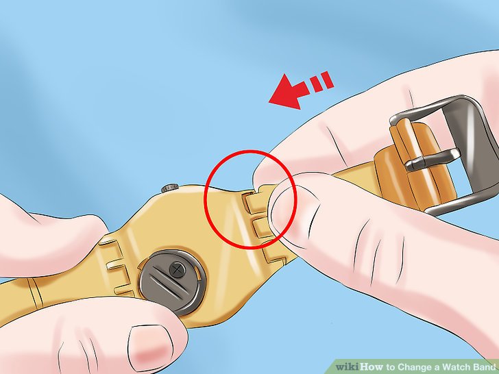 · 如果你有专门的拆卸弹簧棒工具,那就将工具尖端分叉的一头插入表带与表盘的连接处。你可以从任意一段按压弹簧以达到目的。