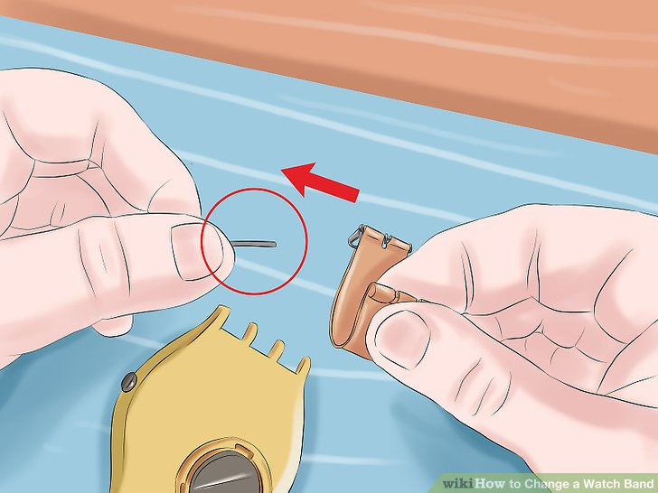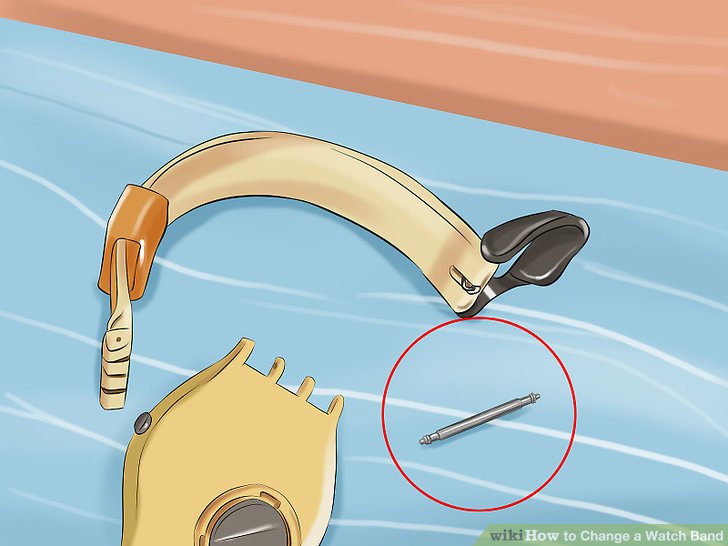 1.将弹簧棒通过每一端的圆环穿过新的表带。你的新表带可能会自带专用的弹簧棒,但你一定要确认弹簧棒与表带是否是互相搭配的组合。