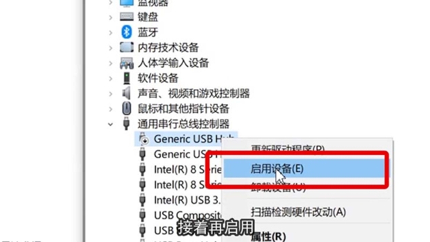 如更新没用,同样是右击对应的选项,然后如禁用,接着再启用。