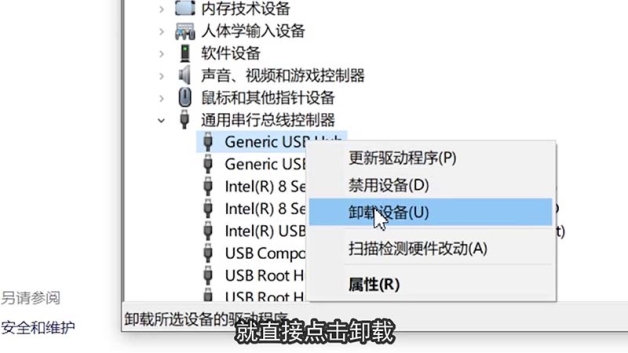 如果还是不行就直接点击卸载,然后重启电脑,再重新插上usb设备,电脑会自动重新识别安装驱动,一般这样做简单的问题就可以解决了。
