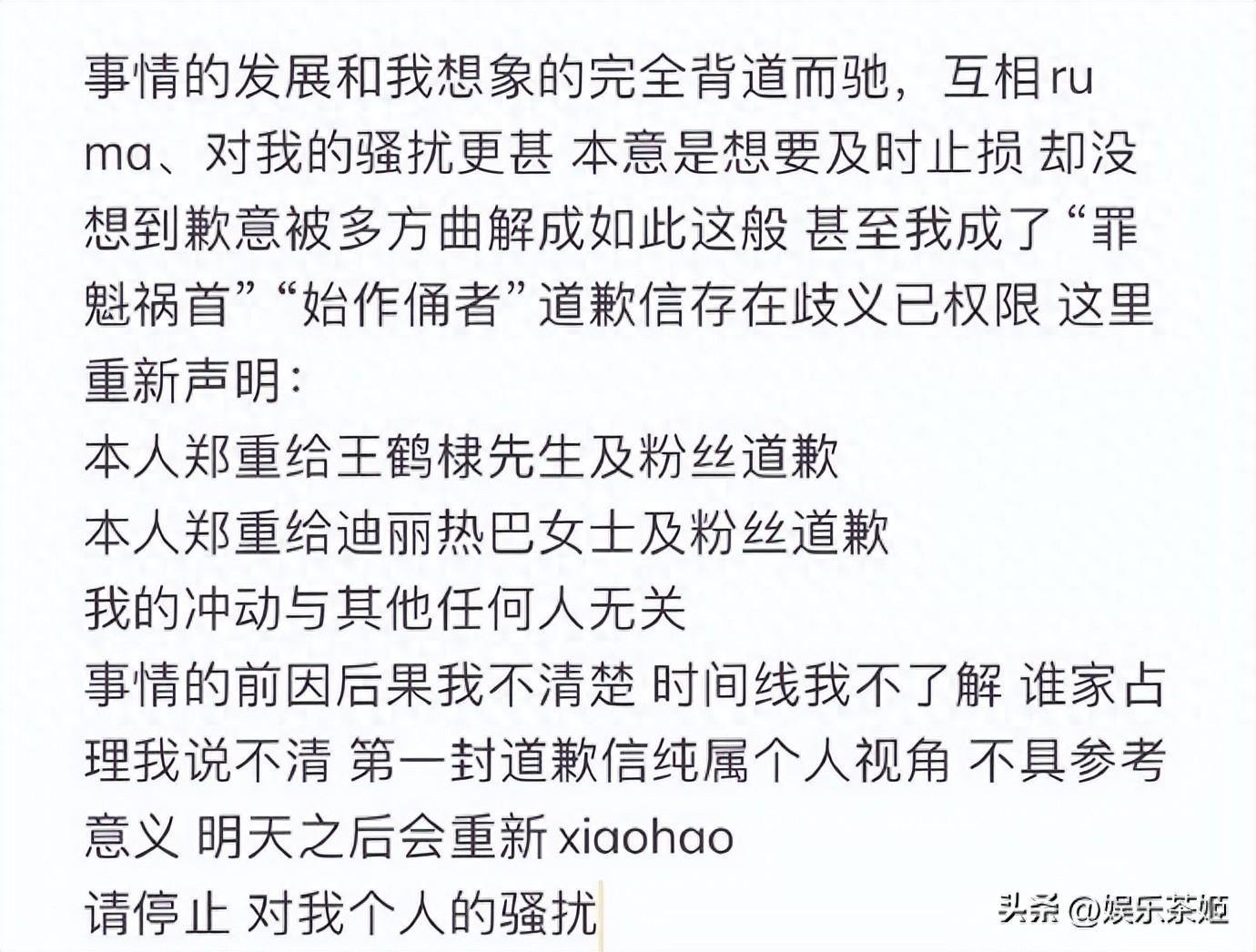 迪丽热巴王鹤棣事件的始作俑者发博道歉,到底是什么事?