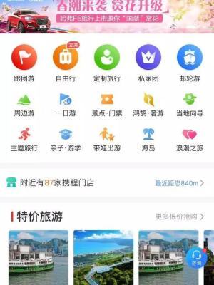 大概最新版的商旅携程APP(ios版,v8.2.2),携程app下载,携程是什么意思啊,进入首页是什么携程的“自由行”板块。