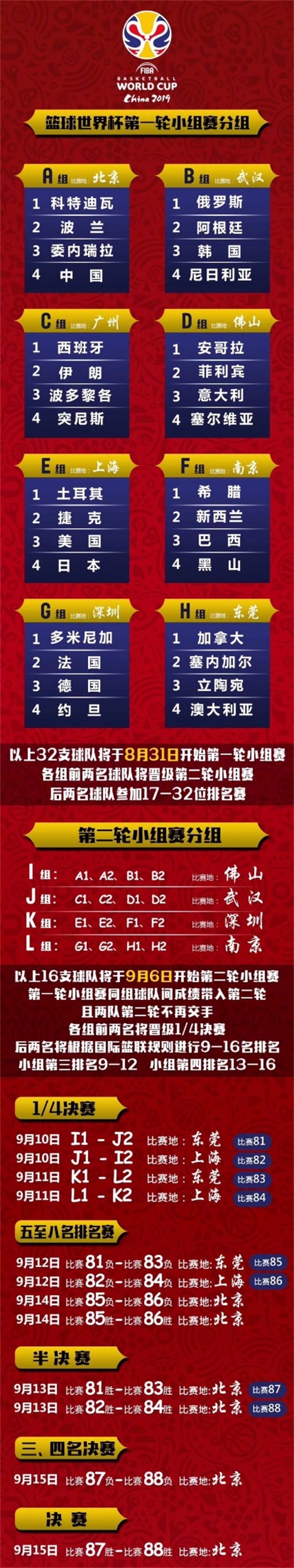 以下是2025篮球世界杯完整赛程表: