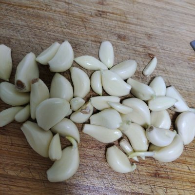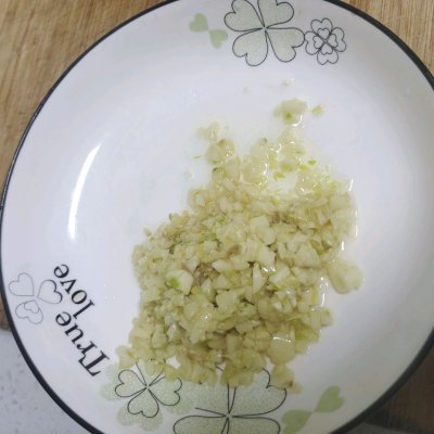2、解冻虾尾得时候给大蒜切成蒜末备用