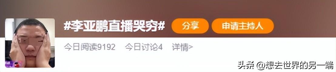 在直播的时候,李亚鹏因聊到收入的话题而不禁哭穷卖惨。