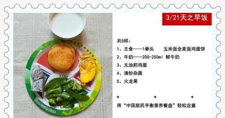 搭配的方法也有很多,有用食物秤称重的,计算吃进嘴巴里的每一口食物的热量;有目测的;还有用拳头巴掌的。