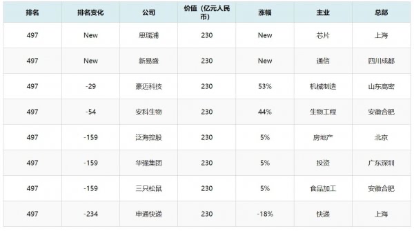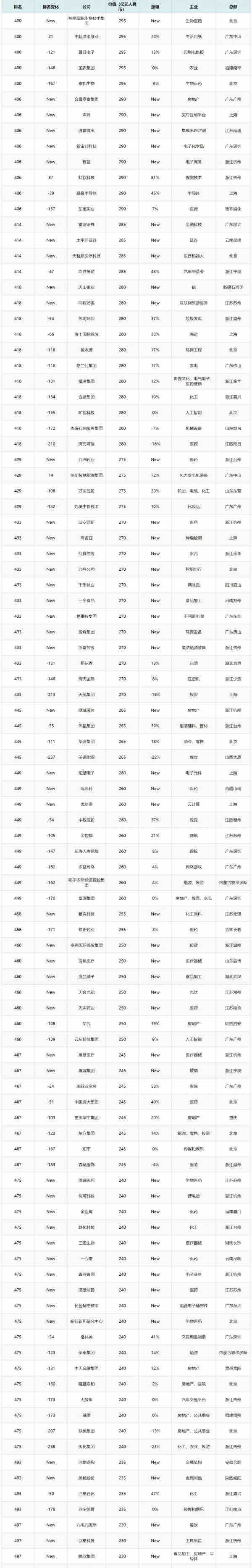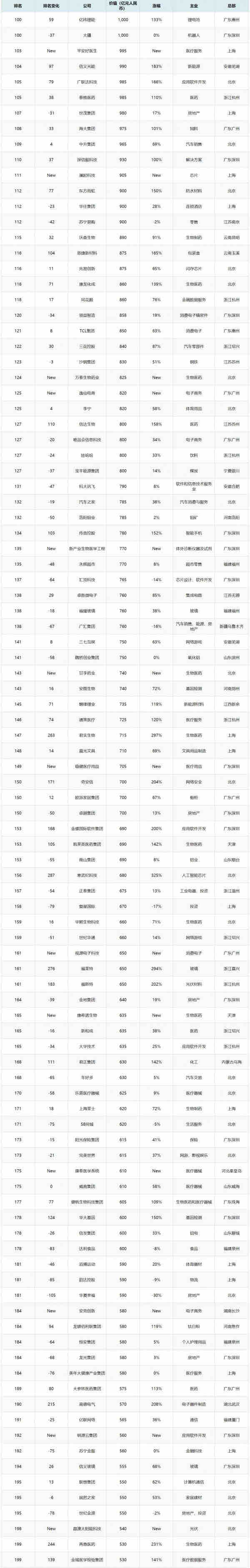 根据榜单显示,436家上榜企业的价值比去年有所增长,其中120家为新上榜;53家上榜企业的价值比去年有所下降,另外有121家去年榜单上的企业今年落榜,包括陌陌、瑞幸咖啡和神州优车等;19家企业的价值和去年保持一致。