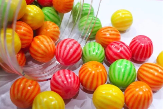 西瓜泡泡糖的造型跟西瓜很像,是表面带有条状花纹的一颗颗球状糖果,颜色也是多种多样,有红色、黄色、绿色等,代表不同的口味。那个年代,大家嘴里嚼的可不是现在的口香糖,而是西瓜泡泡糖,1毛钱就能买上好几颗。