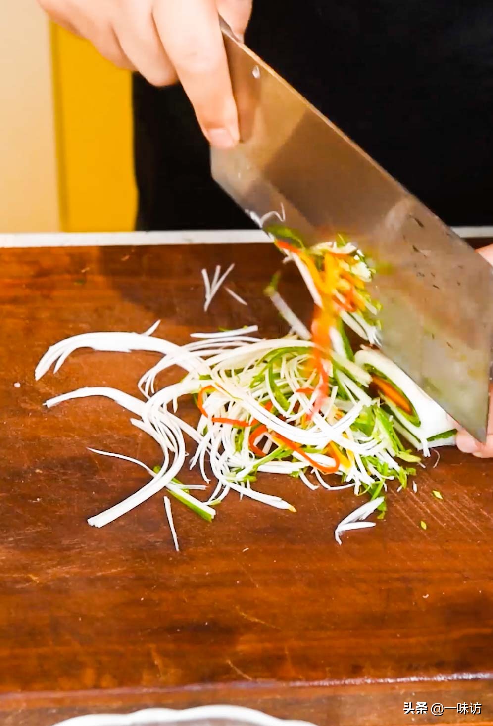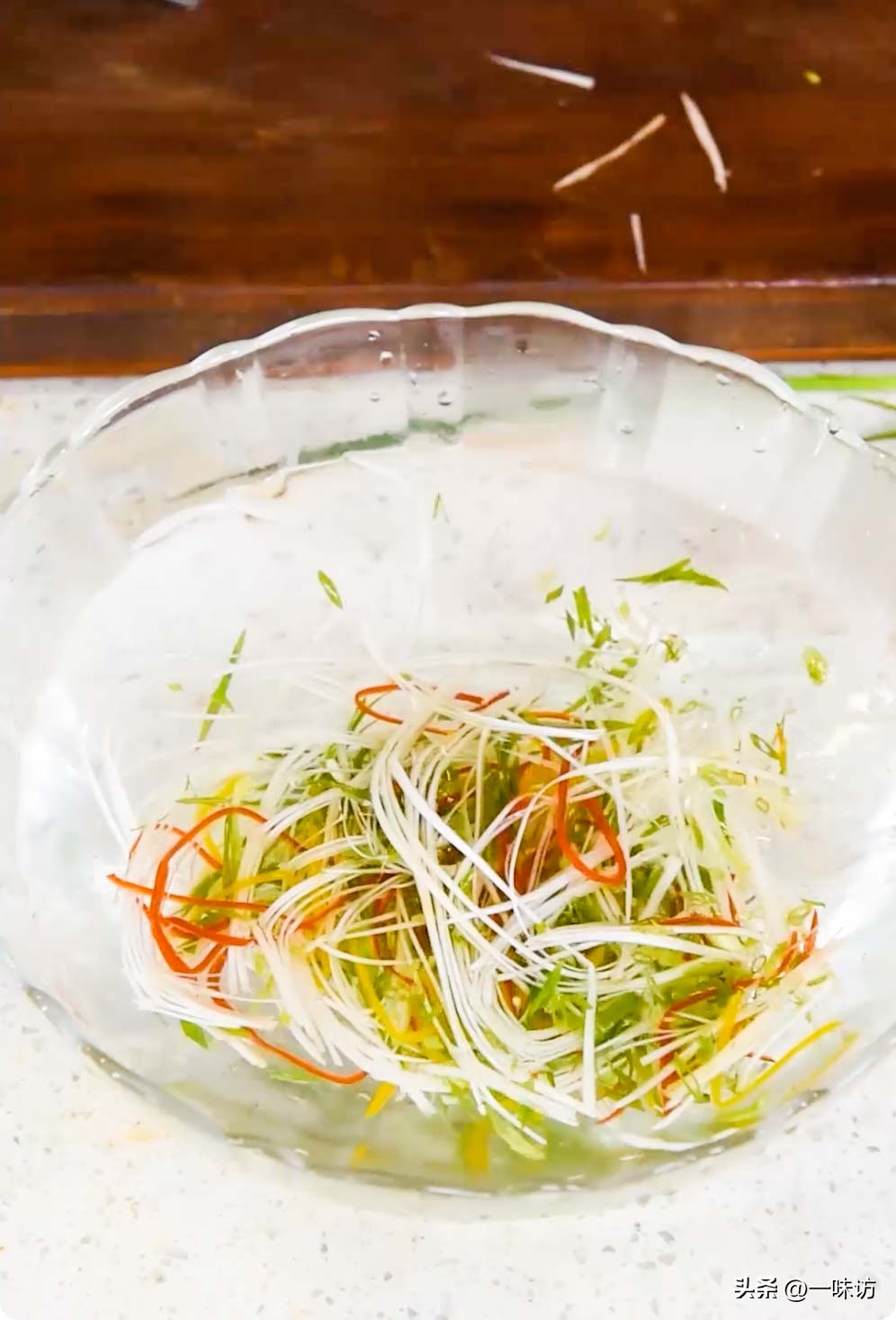 蒸鱼的过程中我们来切一些丝,待会这些丝会撒在鱼上面配色。