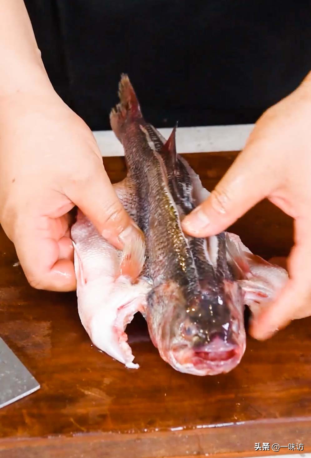 买回来之后用水冲洗一下鲈鱼,然后用擀面杖将鲈鱼敲晕。用刀逆着把鱼两侧的鳞刮掉,掏出两侧的鱼塞。对着鱼肚子切一刀把里面的内脏掏出,小心不要弄破苦胆。