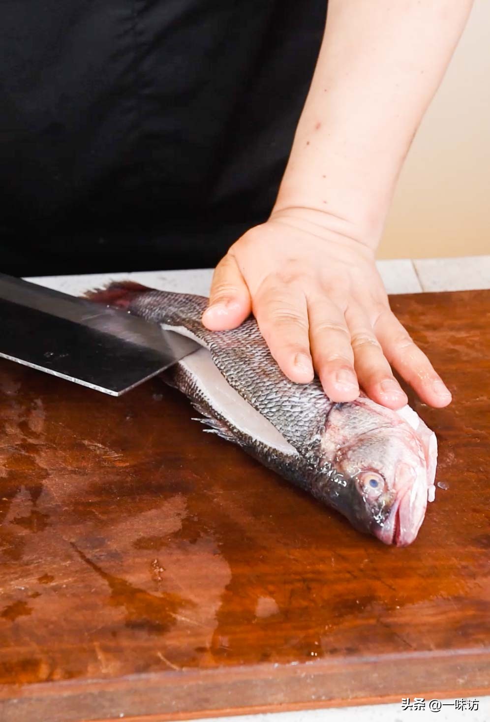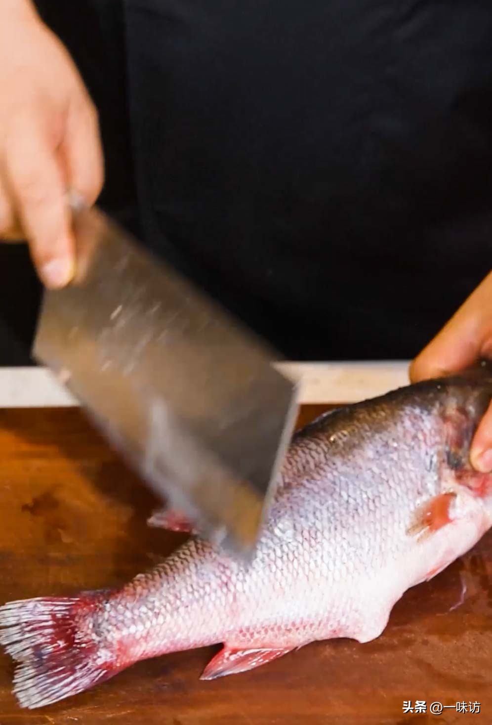 收拾好后还要多一个步骤,那便是在鱼背后切上两刀。这样做的目的一是为了蒸的时候更快熟,二是可以更好的入味。