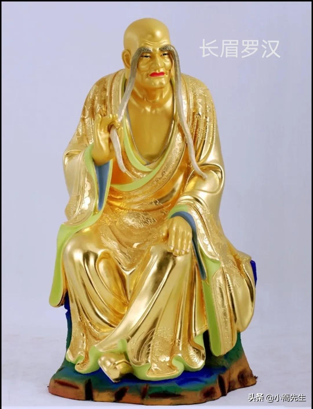 传说这位尊者生下时就有两条长眉,原来他前世也是一位和尚,一直修行到老,眉毛都脱落掉了,但仍然修不成正果,死后再转世为人继续修行,被人尊称为“长眉罗汉”。
