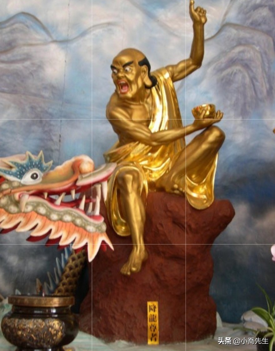 在古印度的传说中有龙王曾用洪水淹没了那竭国,将佛经藏于龙宫,降龙尊者前往龙宫,降服了龙王,取回了佛经,因立大功,被尊为降龙罗汉。(我们最熟悉的就是电视剧中演的济公是降龙罗汉转世。)
