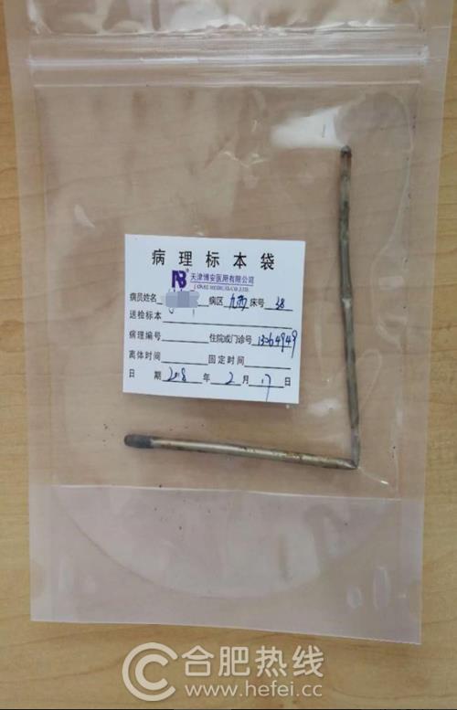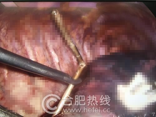 术中取出的金属针竟有18cm长,外面包了一层塑料,而整个手术切口却仅为3个1.5cm长的微孔,医生边将针折弯边小心翼翼地取出,术中出血仅10ml!