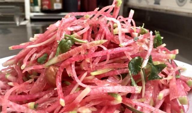 心里美萝卜说起心里美,大家都吃过吗,这是一种萝卜,萝卜的外皮是绿绿的,里面是鲜艳的玫红色,所以我们就把它称为心里美,心里美吃起来口感脆脆的,挺适合凉拌着吃的,尤其过年的时候,大家都吃了很多油腻的食物,整个人的食欲都跟着下降了,不如做点口感清爽的食物,我个人觉得把心里美切成丝,加上点料汁搅拌一下,这样吃起来口感脆脆的,更适合家人的胃口!