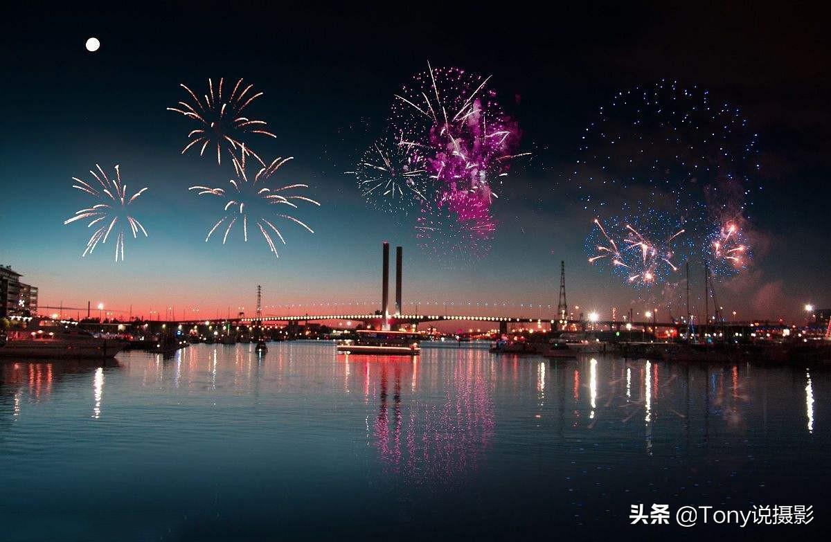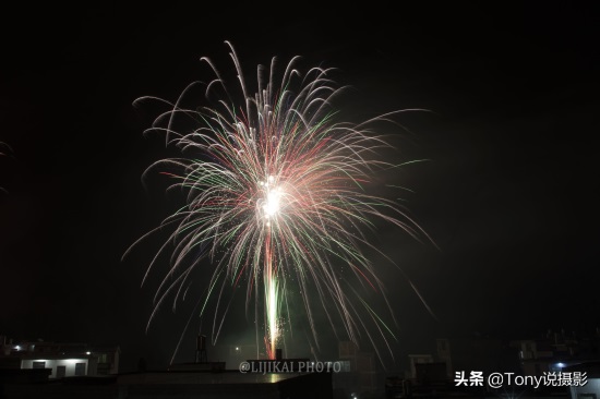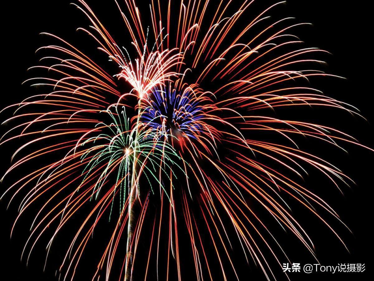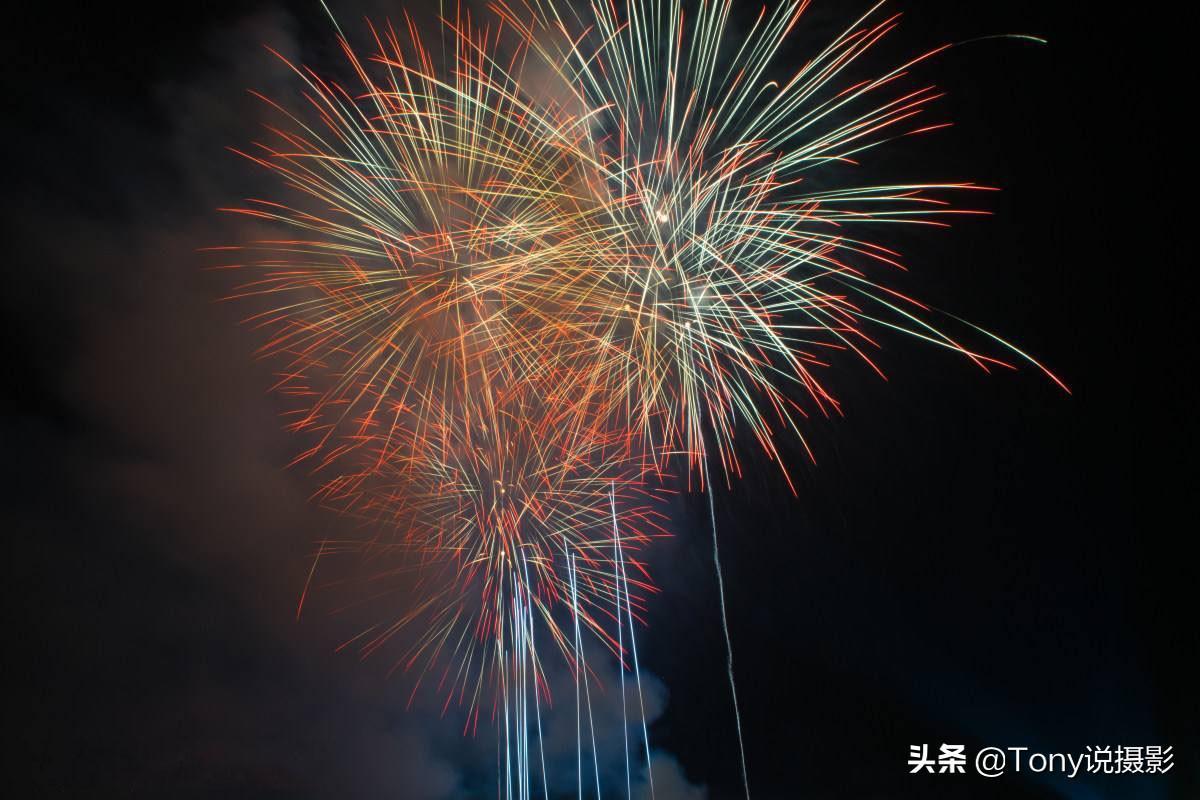 另外,如果想要拍摄出更好看的烟花效果,可以通过长时间曝光来拍摄多个烟花,操作也很简单:按下快门后,等烟花多绽放几个再松开快门,完成拍摄即可。比如下图就是前些年拍摄的烟花。