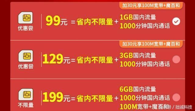 拙诚科技2018年3月20日 笔者最近办了一张中国移动的99元省内无限流量卡,该卡唯一的好处是免费送2张副卡,副卡也享受省内无限流量,但3张卡加起来不能超过40GB,否则就会被限速至1Mbps。