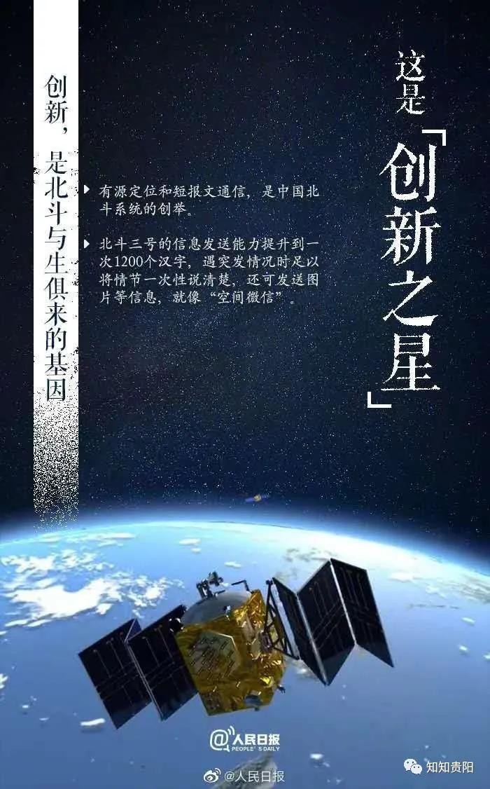 它是“浪漫之星”,北斗七星自古就为人们指引方向;它是“创新之星”,有源定位和短报文通信是中国北斗的创举;它是“中国之星”,这是我们中国人自己的导航卫星。