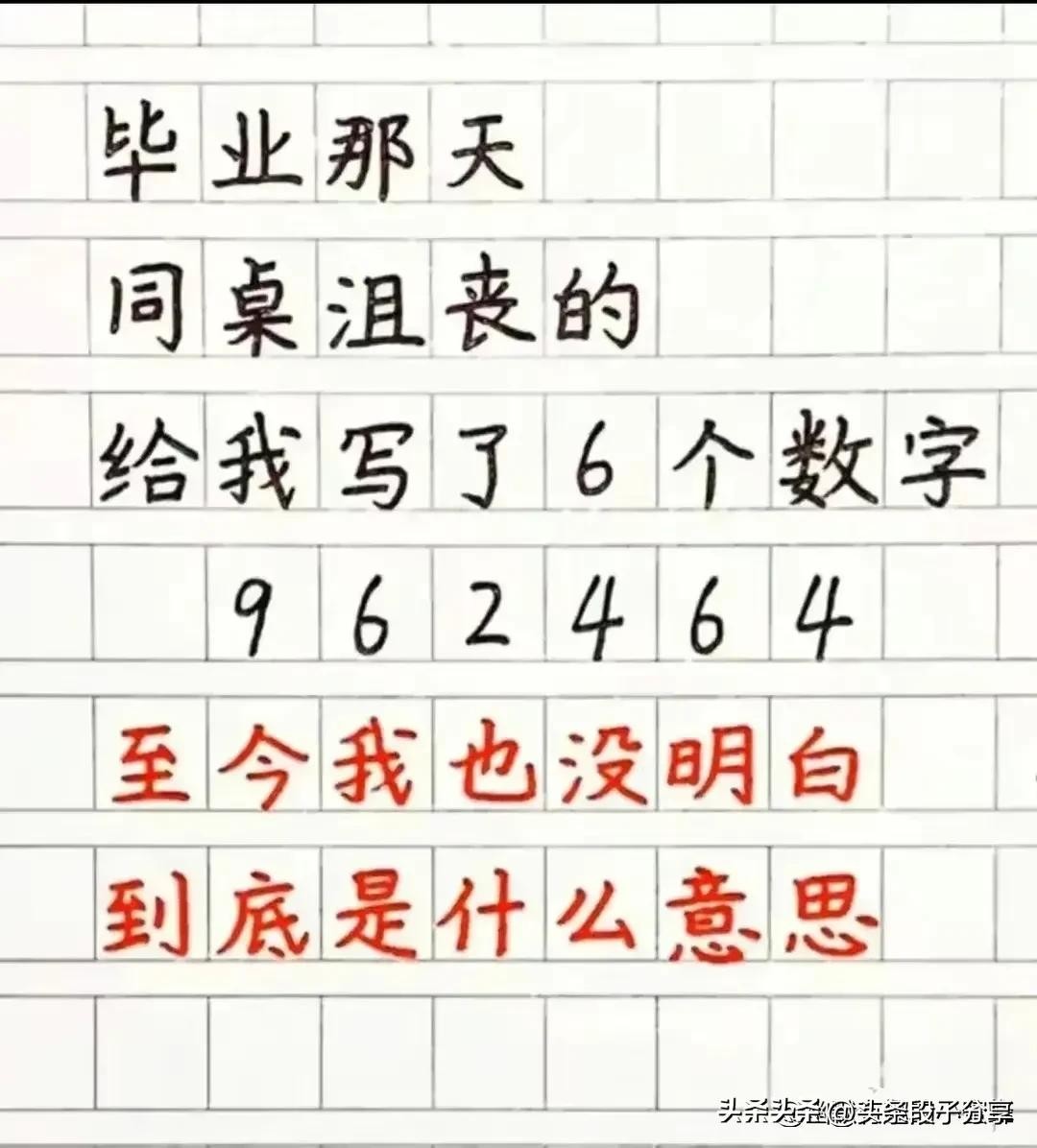 毕业那天,同桌写了6个数字,“962464”到底是什么意思?