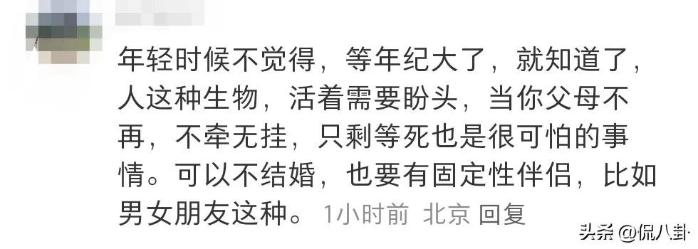 年轻时候不觉得,等年纪大了,就知道了,人这种生物,活着需要盼头,当你父母不再,不牵无挂,只剩等死也是很可怕的事情。可以不结婚,也要有固定性伴侣,比如男女朋友这种。