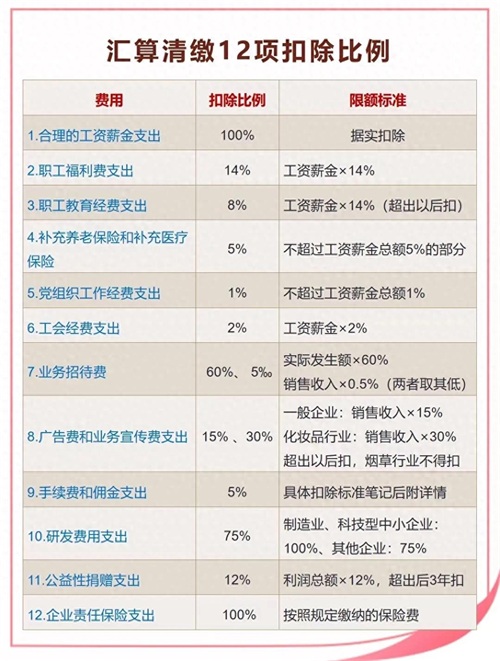 汇算清缴12项扣除比例