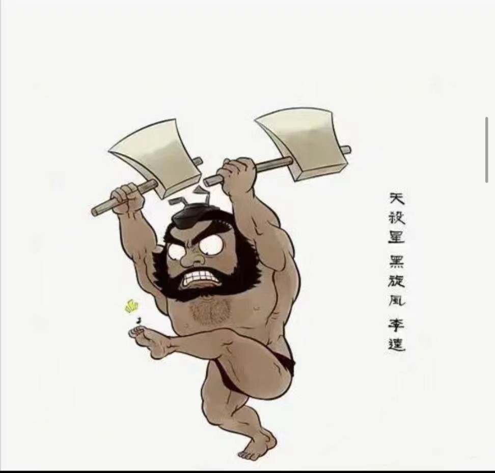 在劫法场救宋江的时候,李逵这个满是胸毛的黑大汉,脱得赤条条的,握着两把板斧,从楼上跳了下来,这场景,想想就辣眼睛。