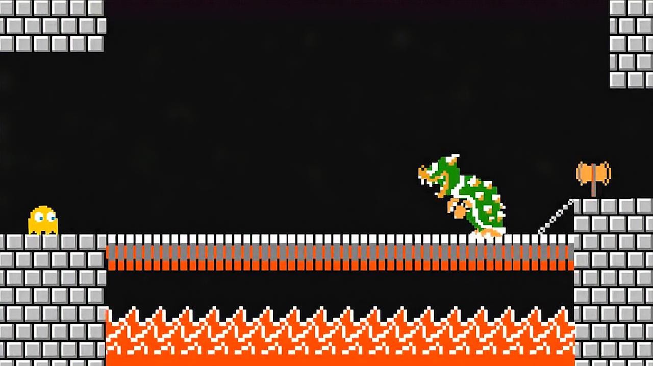 由于看不懂电视里那扭扭曲曲的拼音蝌蚪文,我和我的童年小伙伴都称之为“喷火怪”,远程喷火且一步一步向前蹦跳压迫,长大后也难以忘记曾经被他支配的恐惧。当然费尽千辛万苦,最后解救的小蘑菇头也让我们觉得不值。