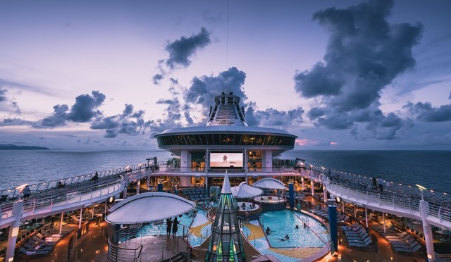 邮轮上的娱乐活动丰富多样,一张船票就能让大家享受包括表演、音乐会、舞蹈、瑜伽和SPA等。此外,还有各种户外活动,如泳池、游乐园、健身房、攀岩墙和篮球场等,堪比主题乐园。