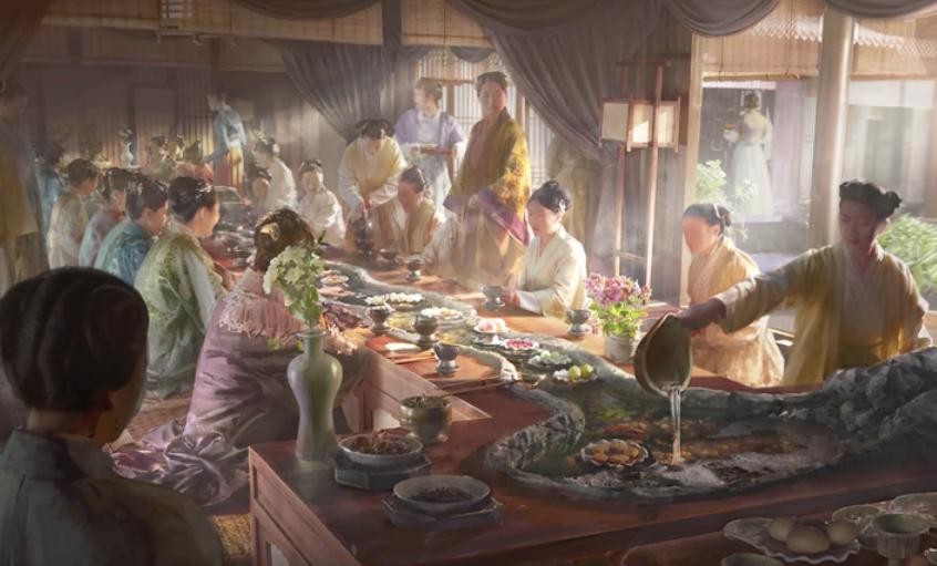 每个人在各自身份与角色下表露姿态,有的谦恭敬酒,有的浅笑应对,也有人兴致高昂地谈吐。此刻,席间的氛围正渐次升温,但又没有人醉得失态,恰巧展现了“适度而止”这一古代礼乐精神。