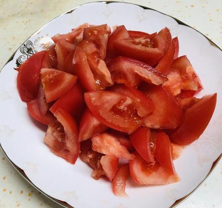 1、西红柿洗净,切滚刀块,备用。
