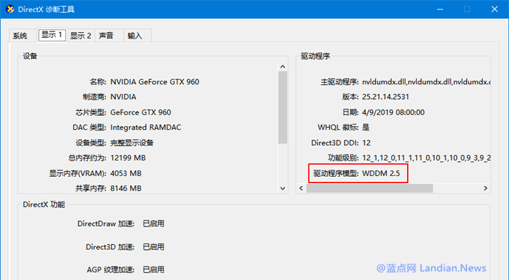 如果你不确定自己的驱动程序模型可以按Win+R然后在运行中输入dxdiag 即可看到各个显示驱动程序版本。