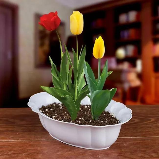 谁说郁金香冬季不能开花?两个促花小技巧送给你,花开多姿又鲜艳。