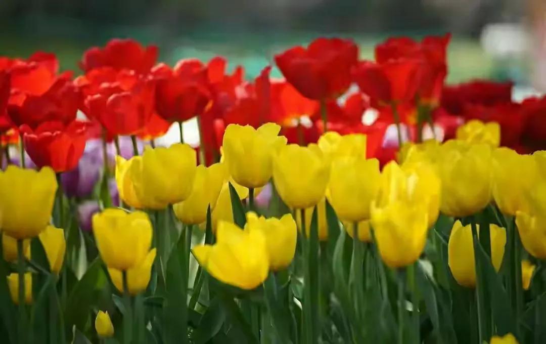 自然条件下,郁金香的开花时间一般都会处在春后,因为只有在光照充足、温度适宜的情况下,郁金香才能绽放形似高脚杯的花朵,整个花期可以持续五个月之久。
