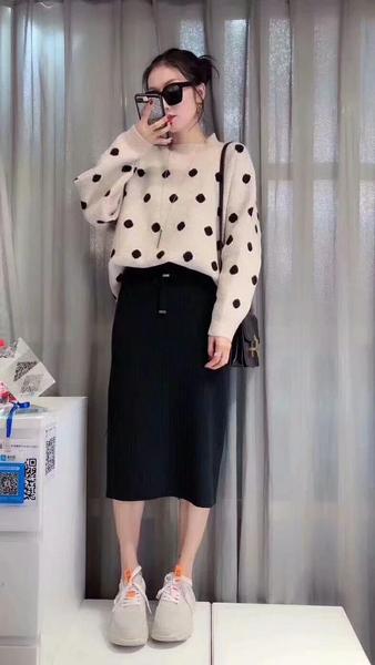 蕾丝长裙搭配毛衣来穿是出境率最高的组合,宽松的毛衣有着温柔的女人味,和蕾丝长裙搭配在一起很有慵懒的时髦感。蕾丝多为白色和黑色,所以几乎可以百搭任何颜色的毛衣都不会出错哦。