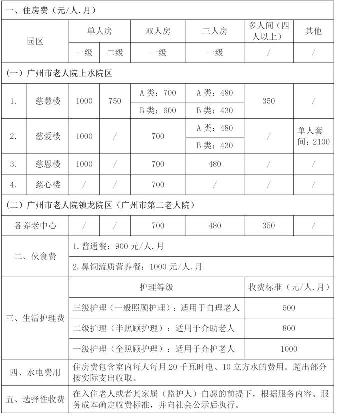 如上图所示,以广州市老人院和第二老人院等为代表的公办养老机构,无需收取赞助费,只需要按月缴纳月费就可以了。全护理的老人入住标准双人间,700元床位费+900元伙食费+1000元护理费,总共也就2600元左右每月,所以性价比也比较高。唯一的缺点是公办机构都需要网上自主申请轮候入住,而且一般都需要排队一段时间,而许多需求入住养老机构的老人一般都是近期急需的,这个方面也是个问题。