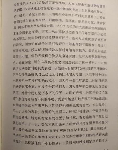 除了儿子第五代阿尔卡迪奥与小女儿乌尔苏拉·阿玛兰坦,她不曾关心过任何人。别人的付出都是理所当然,因为她是作为女王的人选来培养的,她要在他们身上找回女王失位的缺憾,享受女王该有的尊崇。当她死后,她的外孙——第六代奥雷里亚诺走到马孔多的大街上时,除了年迈的庇拉尔·特尔内拉,已经没有人能记住布恩迪亚家族了。她的愚戆销毁了乌尔苏拉亲手打造的辉煌。