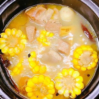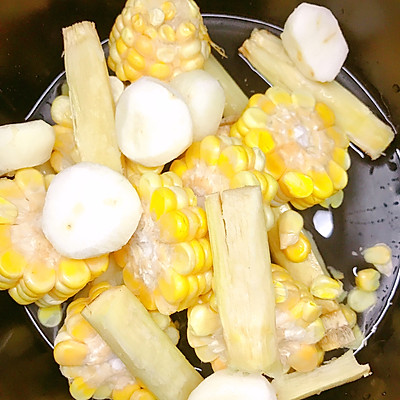 17、将玉米、马蹄、甘蔗放入煲中