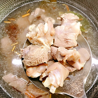 18、将羊肉捞入煲中
