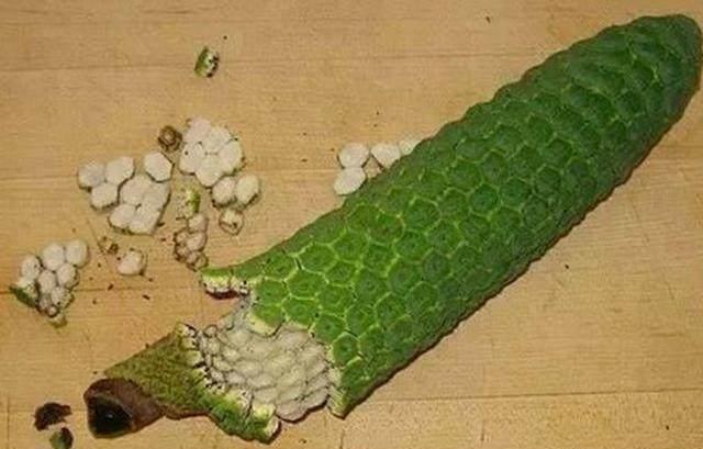 这种水果看起来不知道怎么吃,它是绿色的,是透明的水果。吃它的人不会说它有多幸运。它是来自欧美洲的蓬莱焦。这是一种比香蕉更高的水果,不是香蕉,有人说它可能是玉米,真的很有营养。