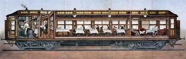 就这样,专为运营东方快车的国际卧车公司(Wagons-Lits)成立了。从法国到罗马尼亚的八家铁路公司均与他达成了协议——他们提供轨道线路和动力火车头,国际卧车公司则为这趟列车供应尽善尽美的卧铺陈设和餐车服务。为此,有两节专门车厢被配置出来,而内格尔梅柯先生像魔术师一样,在这有限的空间里变出了一间宽敞的餐车,一间可吸烟的图书室,一间专供女士使用的小客厅和一间办公室。对了,还有一间「麻雀虽小五脏俱全」的厨房,快车上所有为人称道的精致美食都是从那里端出来的。